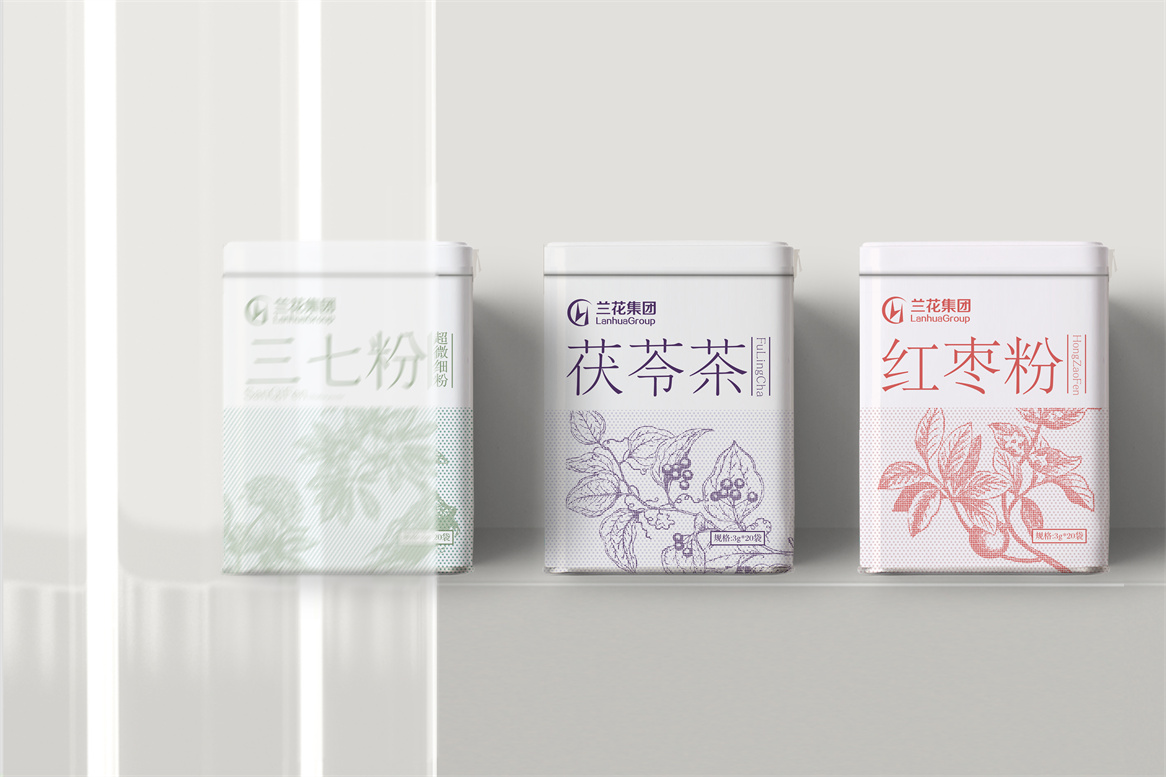 晋东南地区作为炎帝故里,中医药文化历史悠久,有着神农尝百草的典故,中医草药种类丰富,是天然的中草药生产基地,具有得天独厚的区位优势。兰花中药正坐落于此,所以此次兰花中药品牌包装设计以太行山道地药材为核心诉求,以草本药材插画为主视觉符号,结合产品形态——超微细粉,设计了小微颗粒状的均布点状形式,以简洁、干净、纯粹的设计风格表达,使品牌、产品、视觉符号结构清晰、主次要信息分明,清新美观大方,并以产品认知自然本色进行系列化延伸,多而不散,繁而不乱,既能做到系列产品形式统一,又能明确单品区分。