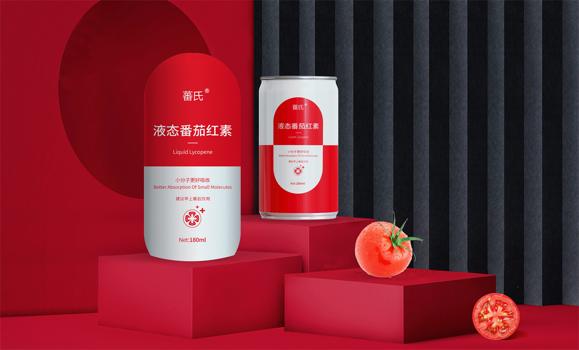 基于品牌策略暨功能性保健饮品的定位和对标产品,分别从产品原材料番茄和对标产品番茄红素胶囊中提取功能性认知和记忆符号:胶囊和加号。借助人们的对番茄红素胶囊的认知嫁接于液态番茄红素,借助人们对医疗符号的认知强调产品及功能性。产品即营销,产品包装设计就是要通过包装传递产品价值,塑造品牌认知的超级符号。