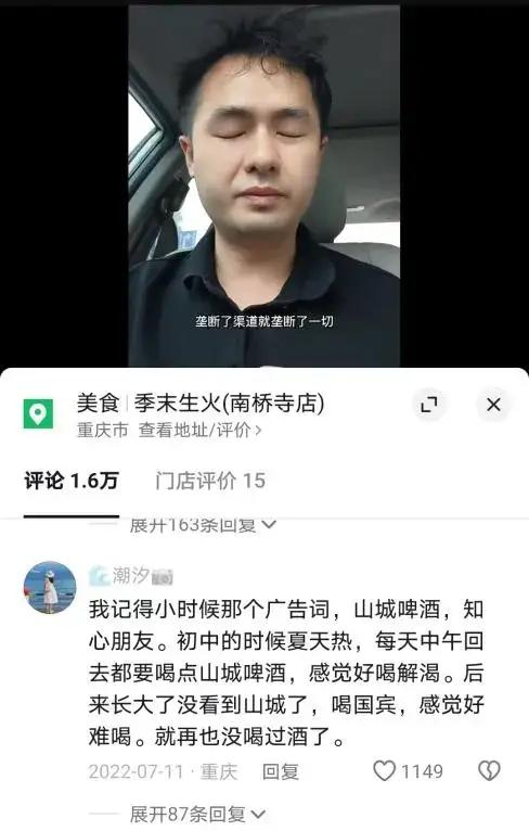 某音上,甚至有网友表示,自己一直以为是山城啤酒改名叫重庆啤酒了。