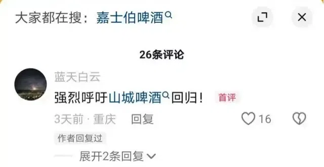 比如有重庆网友就表示,“强烈呼吁山城啤酒回归”“把山城啤酒还给我们重庆”。