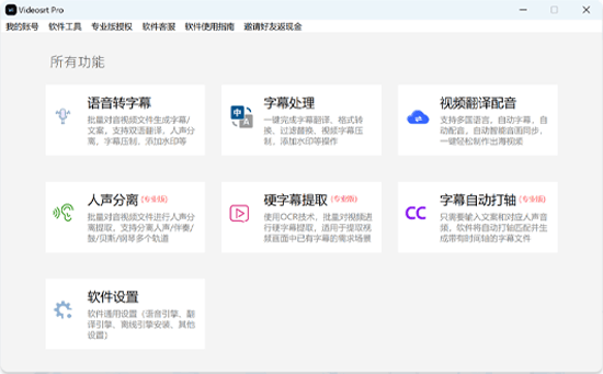 特点:VideoSRT Pro是一款专业的视频字幕处理软件,支持多种语音引擎和翻译引擎。